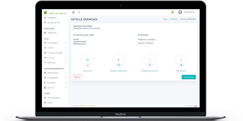 • Control de varios centros y/o disciplinas, alumnos, etc.. dentro del mismo club.