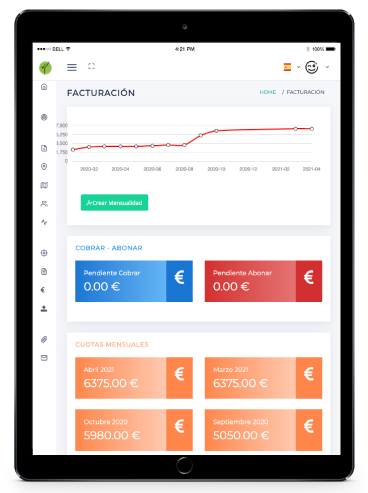 • Facturación por mes, mas historial por años con gráfico.